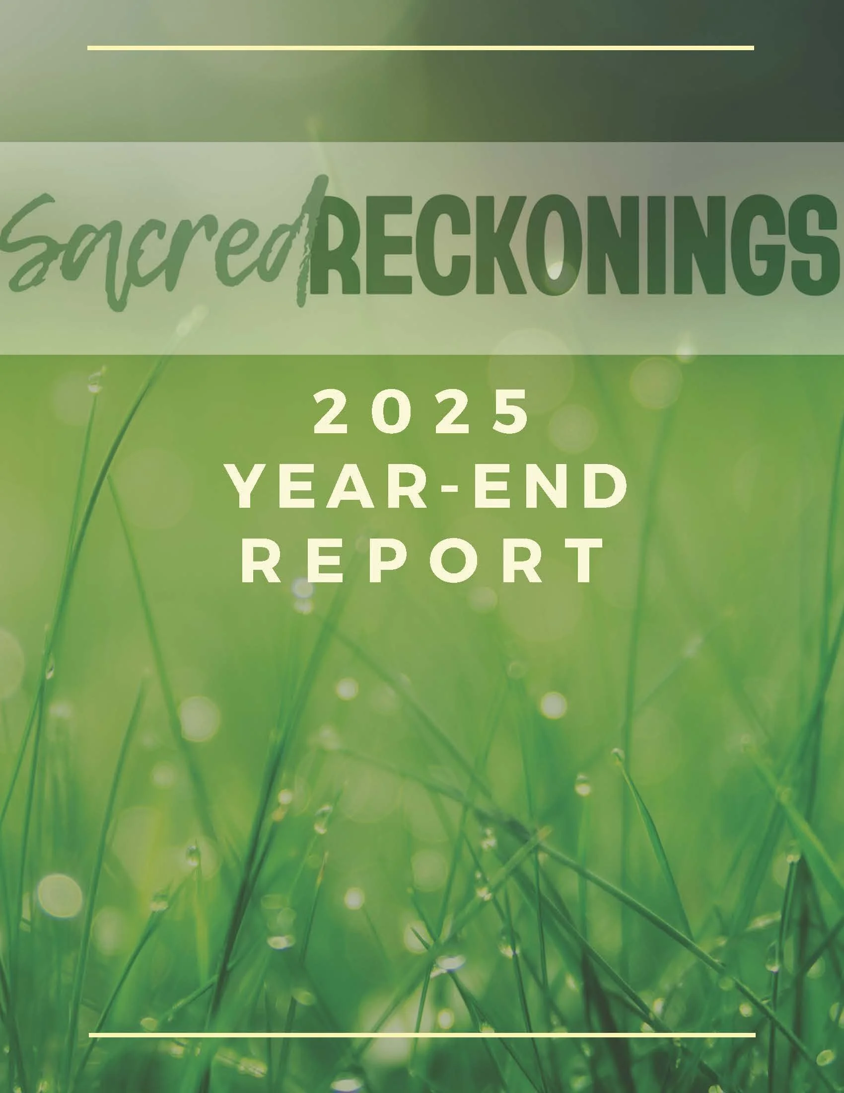 For transparency and accountability, you can find the full Sacred Reckonings year-end report by clicking on the report cover or at this link. Learn about our people, our program, our year, and what comes next.